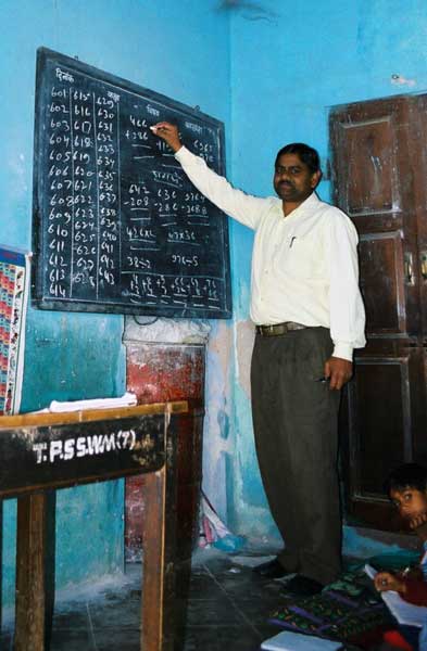 Children of the Tagore Public School and their teacher, Mr Suresh.